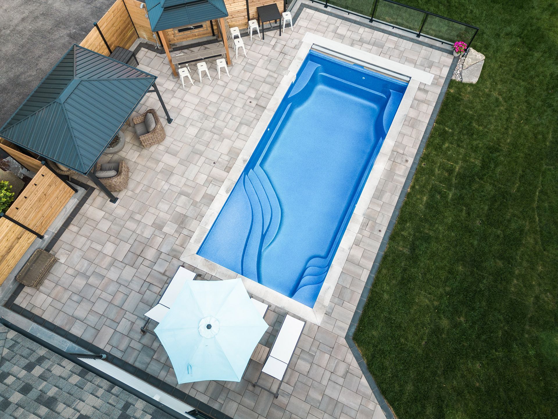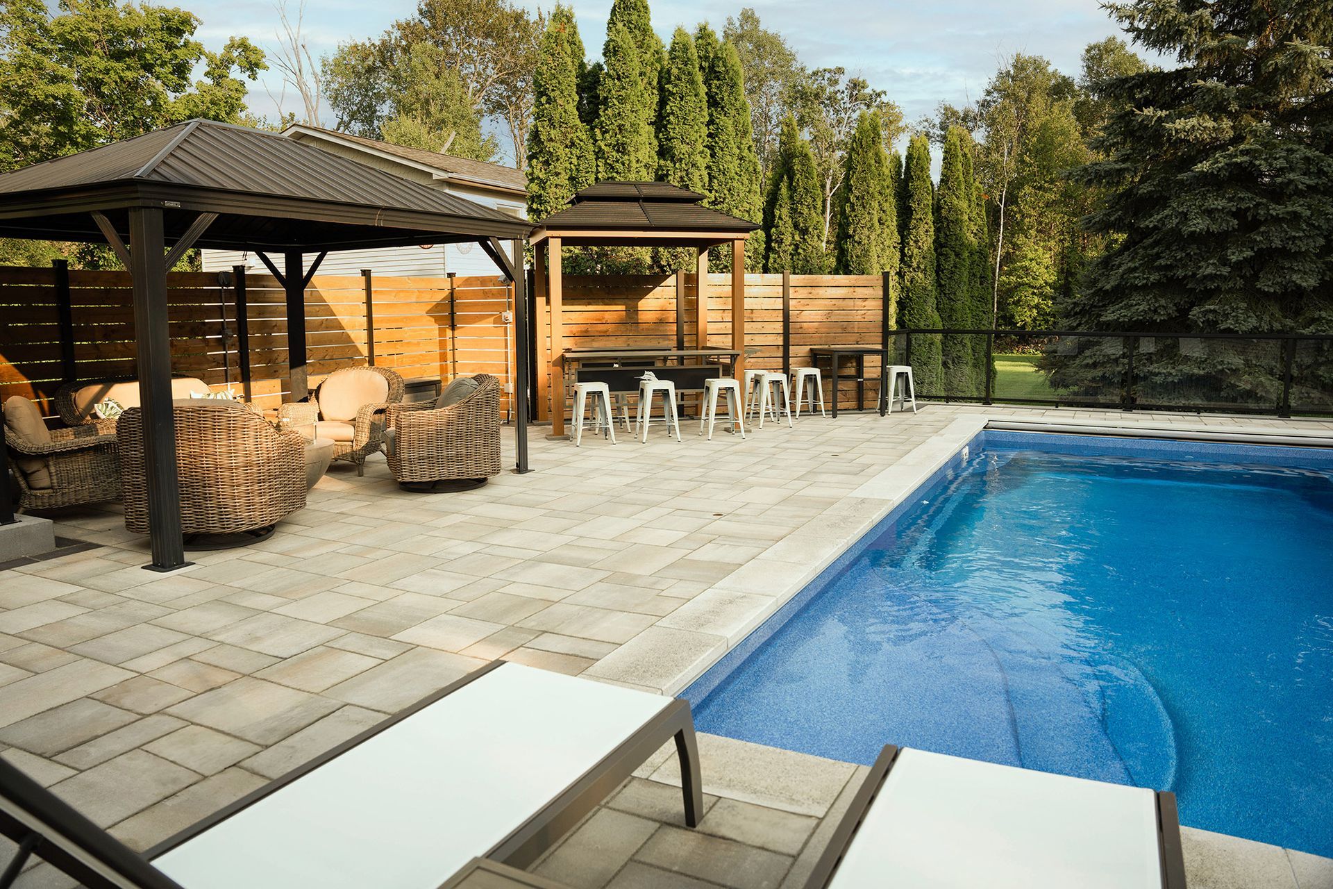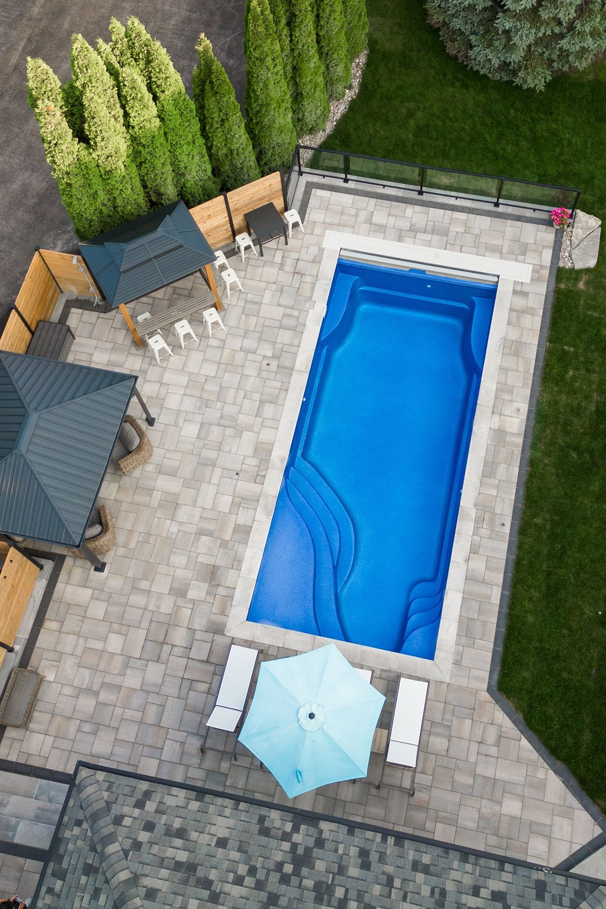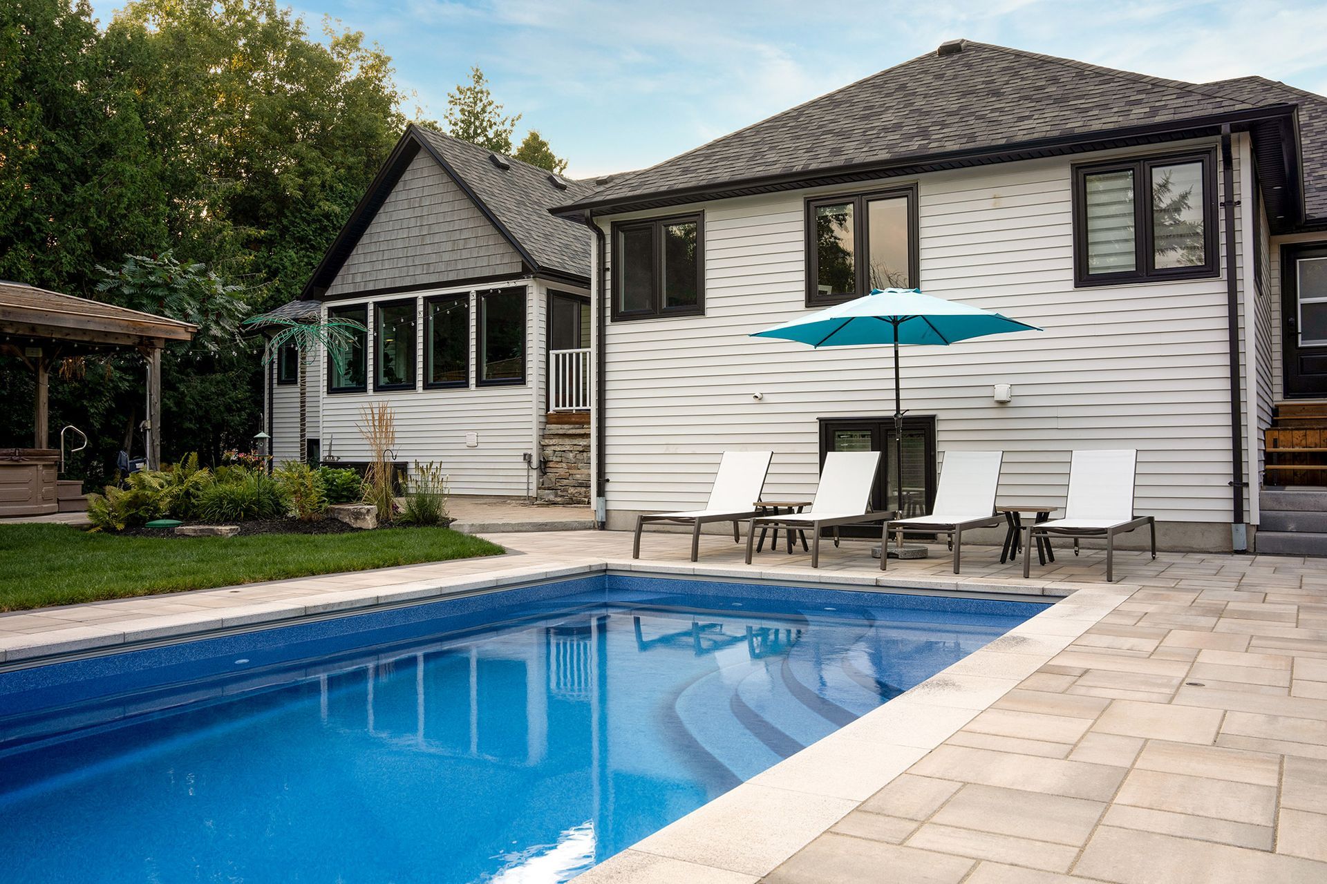 Welcome to this serene countryside retreat, where rustic charm meets modern luxury. Nestled in a large country backyard our installation began with a Latham Inground Fibreglass Pool, seamlessly blending into the natural surroundings. Enhanced with an Automatic Pool Cover, convenience and safety are effortlessly integrated into your pool experience. Adjacent to the pool, a sprawling Unilock Patio invites you to bask in the warmth of the sun or stargaze under the vast night sky. Surrounding the retreat, a thoughtfully designed fence offers both privacy and security, ensuring uninterrupted privacy. Gentle water features trickle and flow, creating a soothing ambiance over the pool. Completing this backyard we installed a Custom Pergola, providing shade and shelter while serving as a focal point for relaxation and gatherings.
