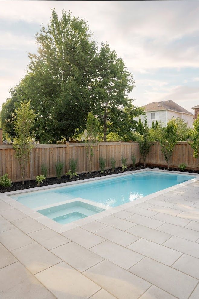 This stunning backyard transformation features the Latham Astoria 14 fibreglass pool — a sleek, modern design that brings luxury and relaxation home. The built-in spa offers the perfect blend of comfort and convenience, creating a seamless transition between swimming and unwinding. Surrounded by elegant patio stone, contemporary lounge seating, and lush greenery, this outdoor space redefines everyday living. The result is a clean, resort-style retreat that’s as functional as it is beautiful — a true backyard oasis built for both relaxation and entertaining.